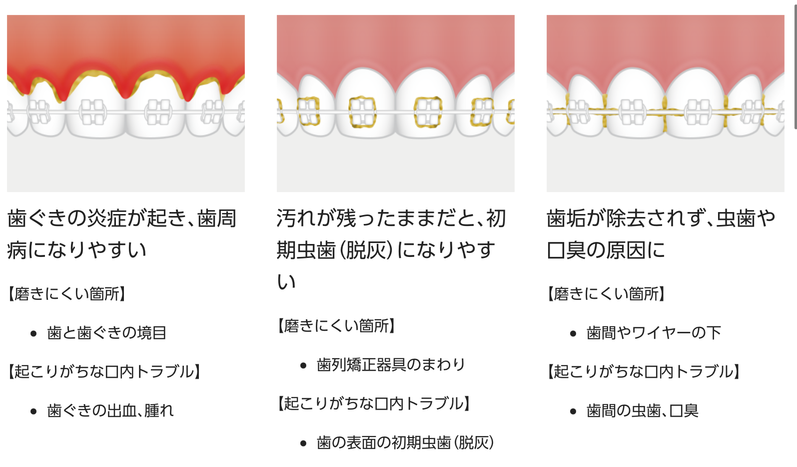 4、歯と歯列矯正器具のまわりが磨けない。