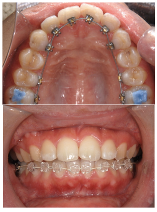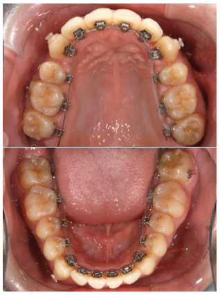 2、上が裏側(舌側)ワイヤー矯正で下が表側(唇側)ワイヤー矯正のハーフリンガル