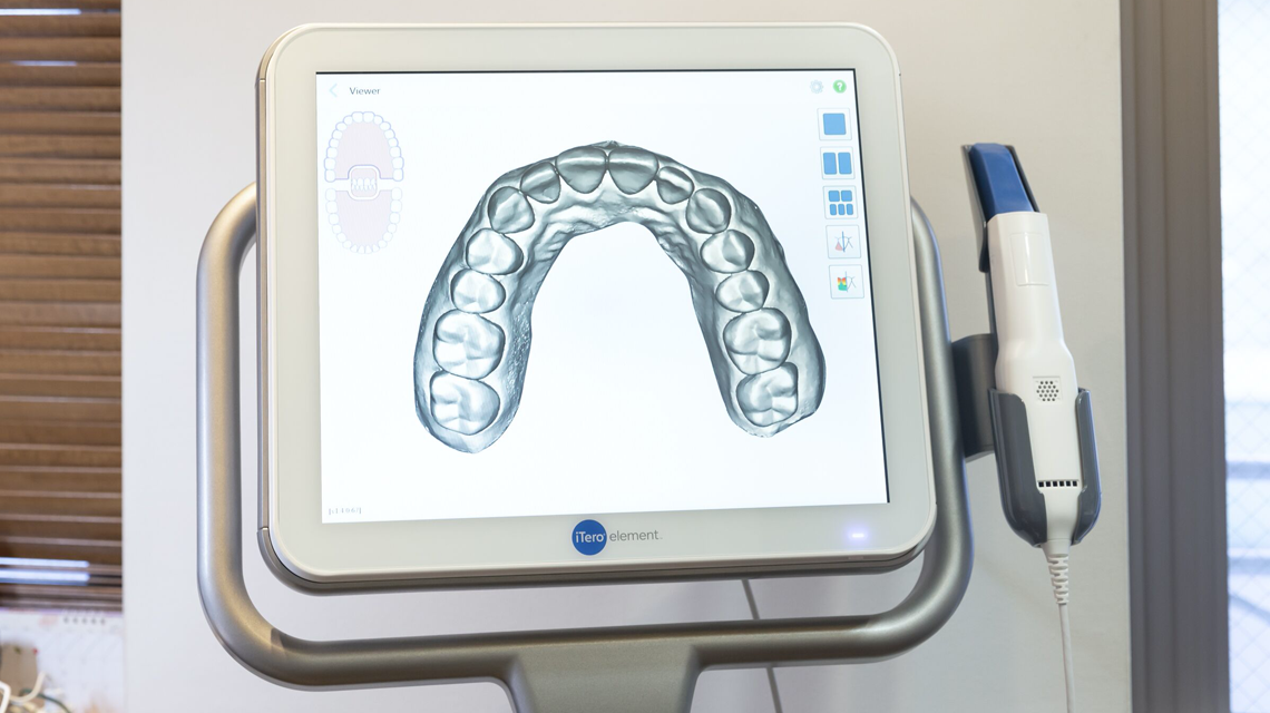口腔内の歯をすべてスキャンして、歯並びや噛み合わせを三次元のデータにする機器です。